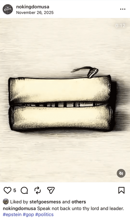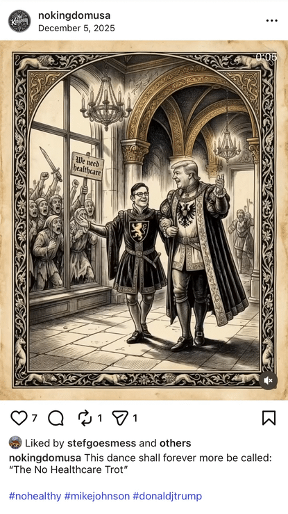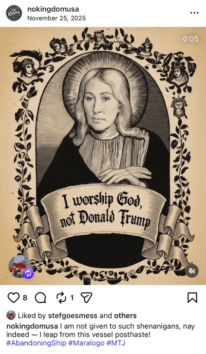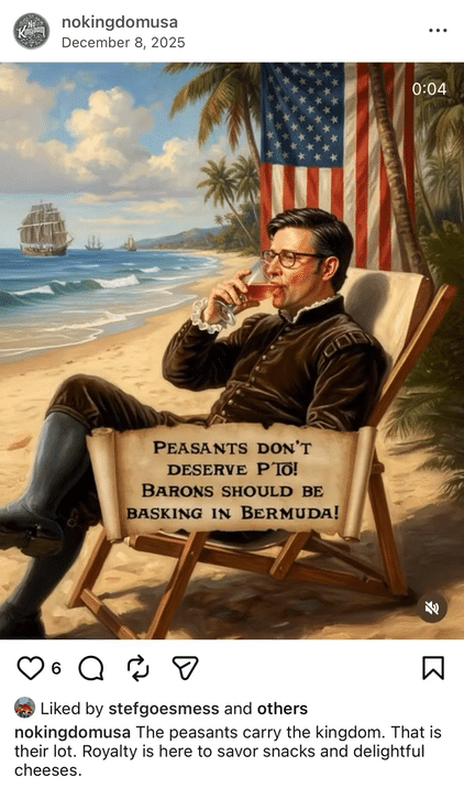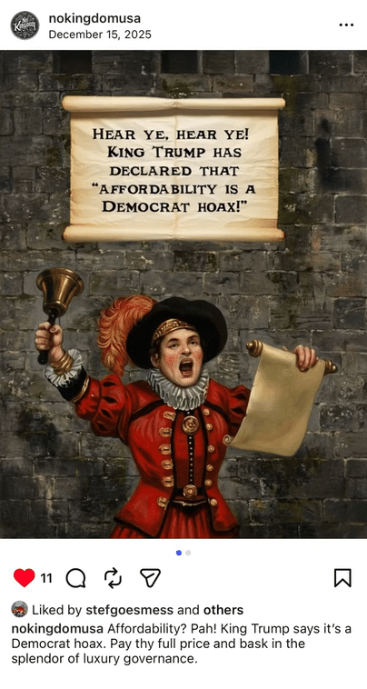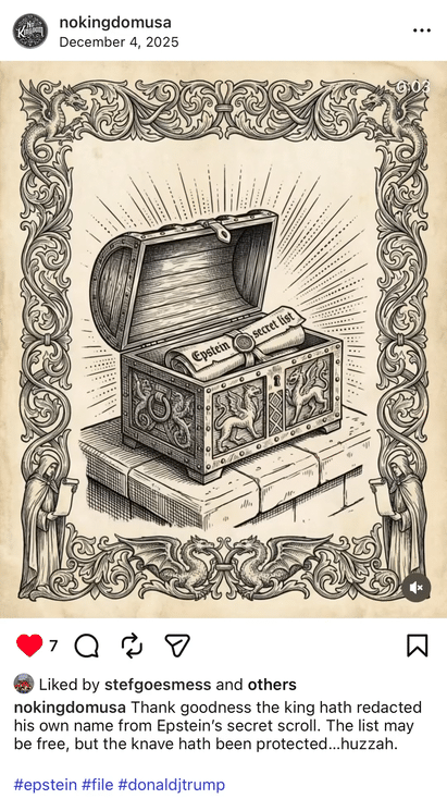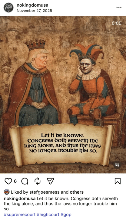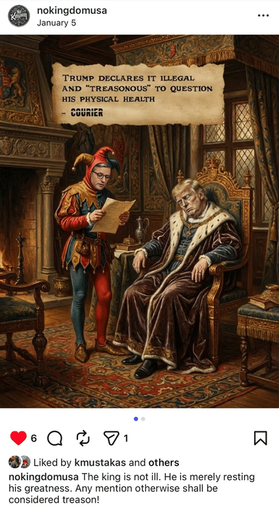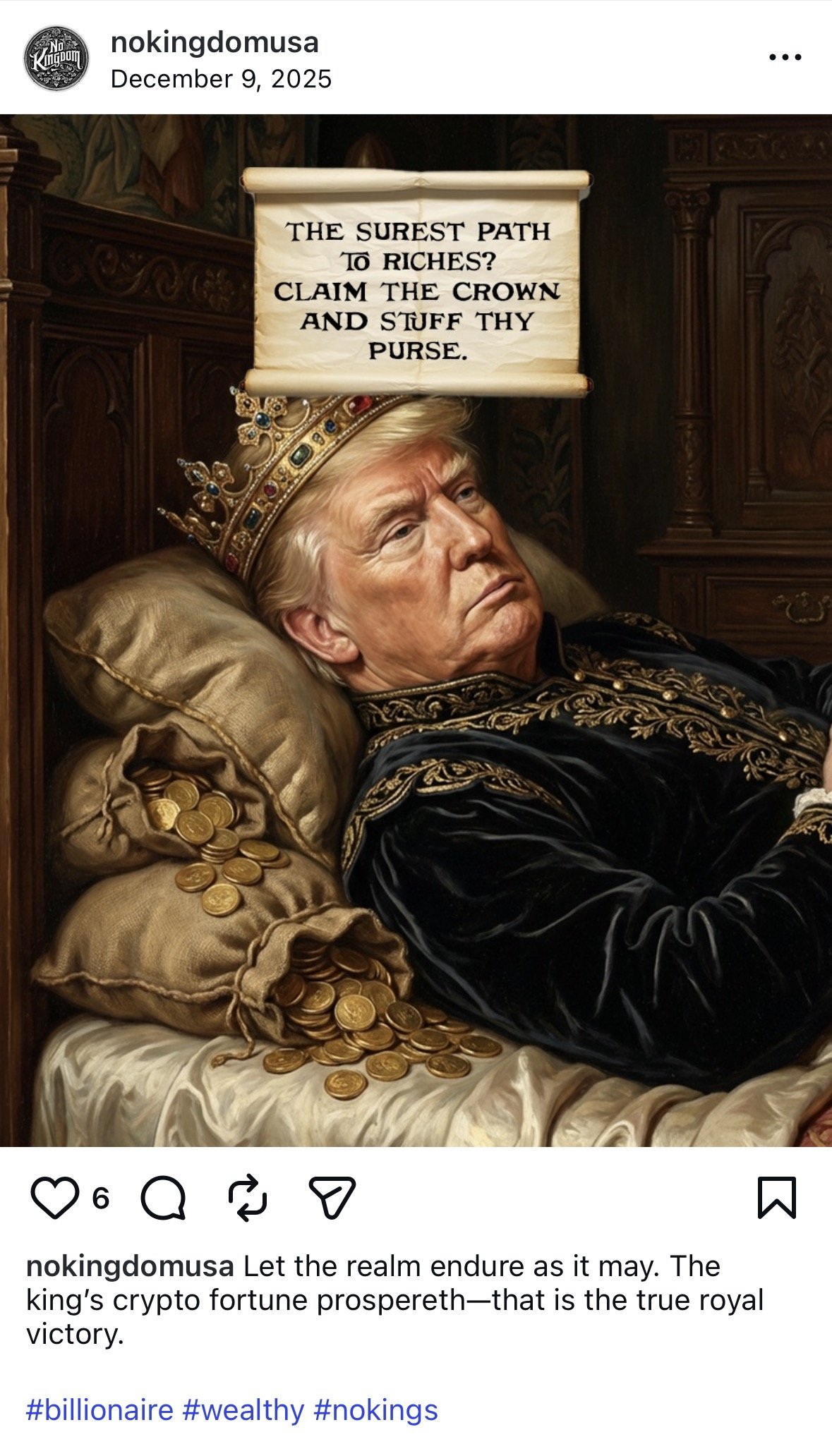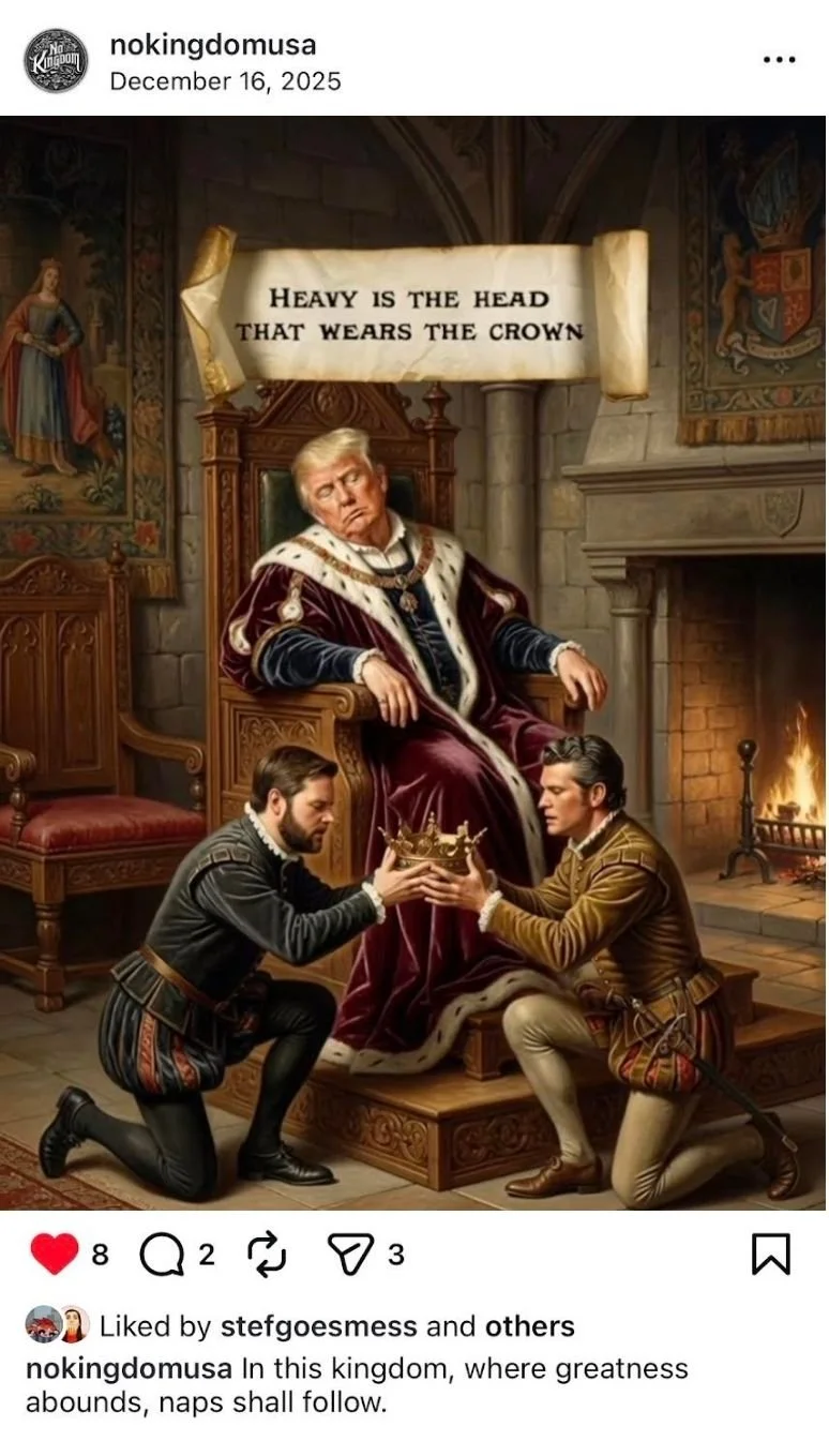 No Kingdoms: A medieval parody, casting Trump as a self-declared king.