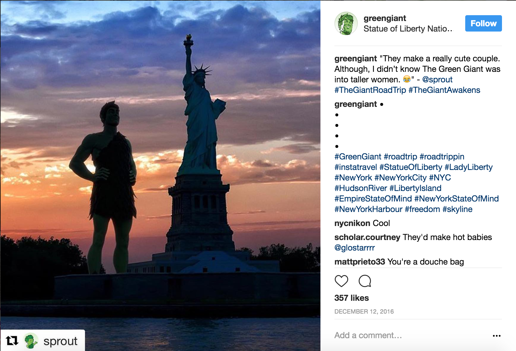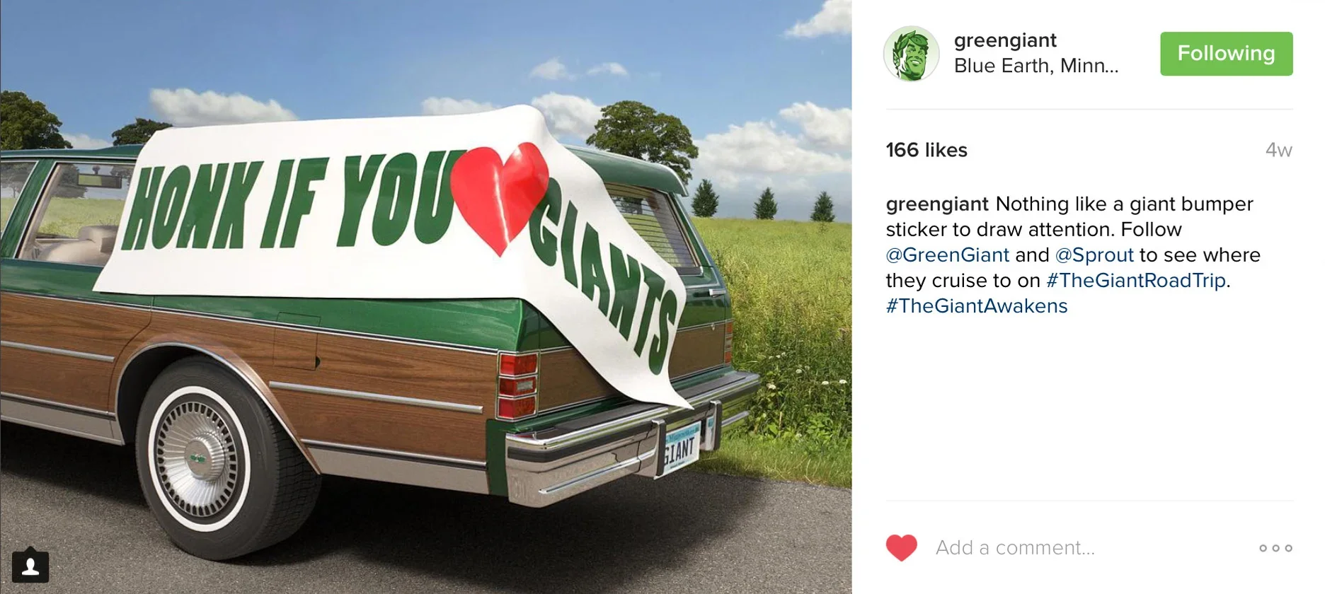 The Jolly Green Giant hasn’t had much of a presence in recent years. To reawaken the brand—and its social presence—we launched The Giant Road Trip across America.